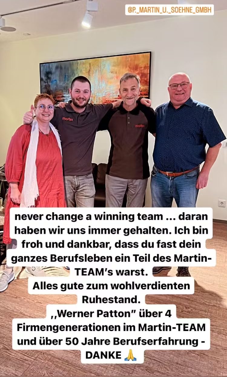In vierter Generation geleitet seit 2023 durch Felix Martin, der gemeinsam mit seinen Eltern Matthias und Gabi Martin als Geschäftsführung die Zukunft des Unternehmens plant und gestaltet.