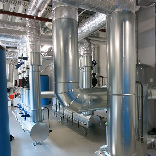 Planung und Ausführung von Heizsystemen in Industriehallen, Verwaltungsgebäuden, Schulen und öffentlichen Einrichtungen (z. B. Wärmeerzeuger, Übergabestationen, Fernwärme).